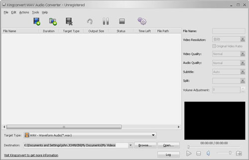 Phần mềm này cho phép bạn có thể nhanh chóng và dễ dàng chuyển đổi tất cả các định dạng phổ biến hiện nay như AVI, MPG, MPEG, DAT, MOV, ASF,FLV sang định dạng audio WAV. Bên cạnh đó, Kingconvert WAV Audio Converter còn giúp bạn chuyển đổi tất cả các file, DVD, CD, VCD sang định dạng audio WAV với chất lượng chuyển đổi cao và tốc độ thực hiện nhanh.