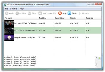 Ksurist iPhone Movie Converter là một trình chuyển đổi phim và video nhỏ, dễ dàng sử dụng cho iiPhone / AppleTV / iPod của bạn. Nó sẽ giúp bạn xem trực tiếp các video và bộ phim trên iPhone của bạn. Ksurist iPod Movie Converter có thể chuyển đổi file với các định dạng FLV, AVI, MPEG, WMV, CUE, APE, MOV, MP4, RM, RMVB, DivX, ASF, VOB, AVCHD, TS, 3GP sang các định dạng iPhone / iPod / AppleTV hỗ trợ. Chương trình cũng có thể trích xuất trực tiếp các file audio từ các file video hoặc phim sang định dạng MP3 của iPhone. Bạn chỉ cần chọn một file video, định dạng đầu ra, xác định chất lượng, thư mục đầu ra, cuối cùng click Start Conversion để chuyển đổi.