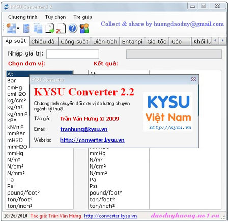 KYSU Converter là chương trình chuyển đổi đơn vị chuyên ngành kỹ thuật gồm 16 nhóm đơn vị với 180 đơn vị thông dụng, rất hữu ích cho những người làm việc liên quan đến việc chuyển đổi đơn vị đo lường.