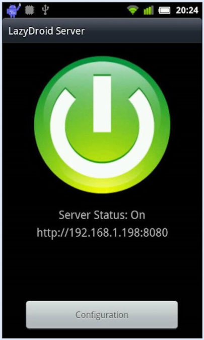 2. Chạy LazyDroid trên điện thoại. Server sẽ tự động được thiết lập.