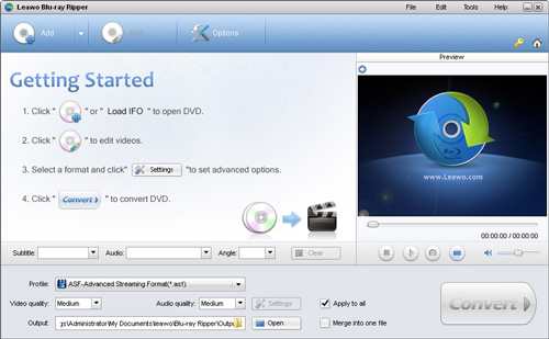 Leawo Blu-ray Ripper có thể rip phim Bluray từ đĩa, file folder và file IFO, tạo một số tùy biến và chuyển đổi phim Blu-ray/DVD sang hầu hết các định dạng như: AVI, MP4, WMV, MPEG, MOV, FLV, MKV, RMVB.