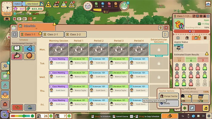 Có 4 phòng học cũng cho phép người chơi đa dạng hóa các môn học được giảng dạy trong đó. Một lớp có thể chỉ tập trung vào 2 môn học, trong khi 1 lớp khác có thể thấy học sinh yêu cầu học cả 4 môn. Người chơi có thể phục vụ việc giảng dạy trong mỗi lớp theo các chủ đề bắt buộc, đồng thời đào tạo giáo viên phát triển cùng với các lớp học để mức độ học tập nhất quán cho học sinh.