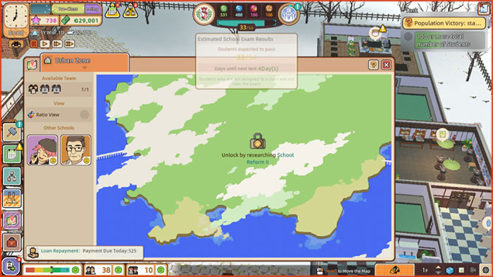 Tìm kiếm các khu vực mới trên bản đồ để khám phá các cửa hàng, cộng đồng và trường học của đối thủ. Khám phá này cho phép có nhiều mặt hàng hơn để mua, tuyển sinh tiềm năng và tương tác với các hiệu trưởng khác.