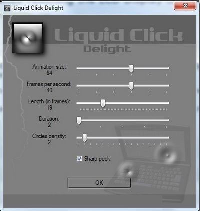 Liquid Click Delight là phần mềm miễn phí, sẽ tạo cảm giác màn hình máy tính mà người dùng đang sử dụng giống như một màn hình cảm ứng. Sau khi cài đặt công cụ này, mỗi một cú click (chuột phải hoặc trái) sẽ tạo nên hiệu ứng gợn sóng trên màn hình, tương tự như khi… người dùng sử dụng tay để nhấn trực tiếp trên màn hình.