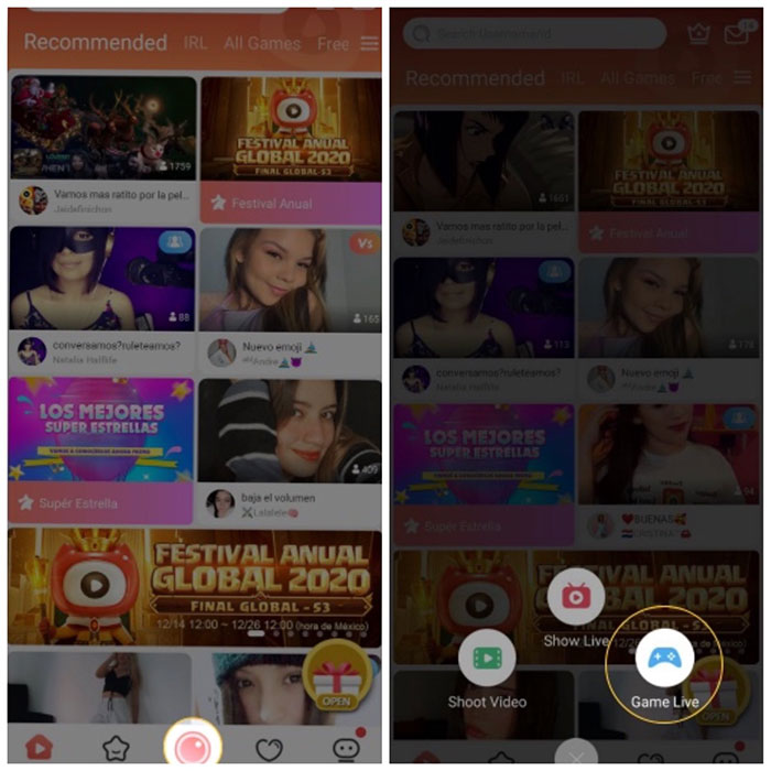 Bước 3: Tìm biểu tượng ở giữa dưới cùng màn hình và nhấp vào Game Live.