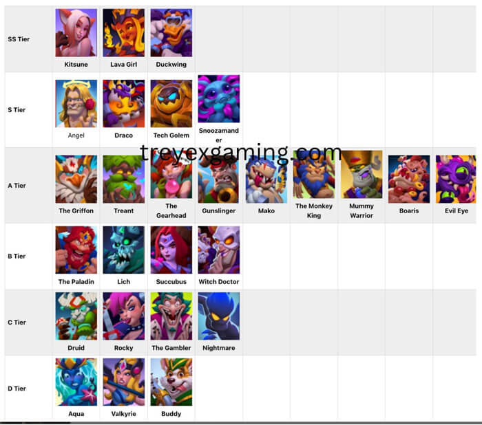 Lưu ý: Phe phái của anh hùng đóng vai trò quan trọng. Mỗi tuần, một phe sẽ nhận được buff khiến một số đơn vị mạnh hơn những đơn vị khác. Bài viết này chỉ là xếp hạng các thẻ anh hùng để giúp bạn biết thẻ nào mạnh mà không áp dụng các buff hàng tuần.