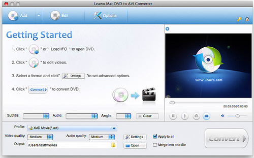 - Rip bất kì đĩa DVD nào sang định dạng AVI dành cho Mac: Hỗ trợ rip đĩa DVD-5, DVD-9 và đĩa DVD được bảo vệ CSS.