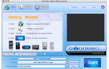 MacVideo DVD to MOV Converter là phần mềm chuyển đổi DVD sang định dạng MOV tuyệt vời, có thể rip DVD sang định dạng MOV trên máy tính Mac với chất lượng đầu ra cao cùng tốc độ thực hiện nhanh. Là phần mềm chuyển đổi mạnh mẽ, nó có thể giúp bạn cắt thời gian chạy video, cắt kích cỡ video, nối video,... trên hệ điều hành Mac OS X. Với phần mềm chuyển đổi này, bạn có thể dễ dàng sao lưu đĩa DVD yêu thích của mình.
