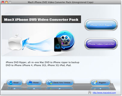 MacX iPhone DVD Video Converter Pack, sư kết hợp giữa MacX iPhone Video Converter và MacX iPhone DVD Ripper, có thể rip DVD và chuyển đổi video cho người dùng Mac chỉ với vài cú nhấp chuột.