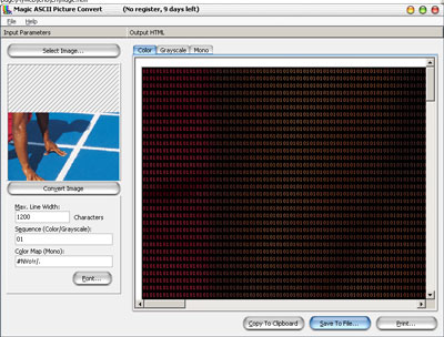 Magic ASCII Picture Convert là chương trình giúp chuyển đổi các tập tin ảnh thành hình ASCII. Tập tin xuất ra có định dạng HTML, RTF hay BMP nên bao gồm cả màu sắc rất lạ và đẹp mắt.