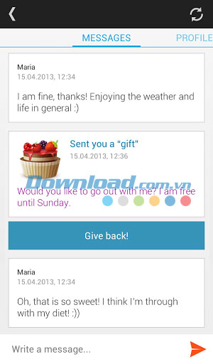 - Một loạt các dịch vụ và thông báo, vì vậy bạn có thể giữ liên lạc và kết bạn với những người dùng mới - những thông báo về các tin nhắn mới, người truy cập vào hồ sơ của bạn và những người quan tâm đến bạn. Các dịch vụ đặc biệt như: tình trạng VIP, quà tặng, vv sẽ giúp bạn gặp gỡ các chàng trai và cô gái chỉ với một cú nhấp chuột.