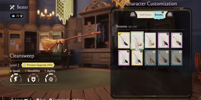 Khi đã có những cây chổi yêu thích cho vị trí của mình, người chơi sẽ muốn nâng cấp chúng để trở nên tốt hơn. Mọi người có thể làm điều này bằng cách chi Moonstone, một trong những loại tiền tệ của Harry Potter Quidditch Champions. Có 3 chỉ số chính cho mỗi cây chổi và bạn sẽ muốn để mắt đến chúng để biết loại nào phù hợp nhất với mình.