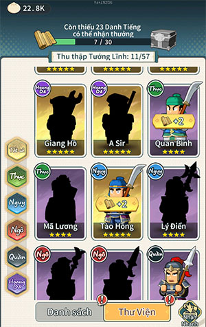 Tướng trong 3Q Thành Chủ Tiêu Dao được chia thành Danh Tướng, Tướng Lĩnh thường và Tướng Lĩnh nguyên liệu tăng cấp. Danh Tướng mạnh hơn nên ưu tiên bồi dưỡng, Tướng Lĩnh thường thì giai đoạn đầu dùng để vượt ải cũng có thể bồi dưỡng. Sau khi tăng cấp Tướng Lĩnh có thể tái sinh để nhận lại toàn bộ tài nguyên, nhưng tăng Sao thì không thể hoàn trả cấp Sao, vì vậy người chơi cần cân nhắc kỹ trước khi tăng Sao cho tướng lĩnh.