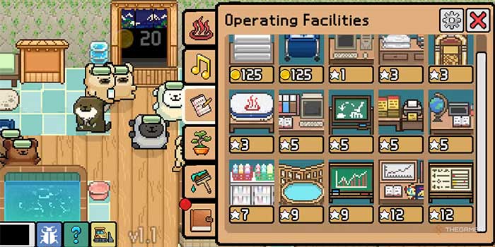 Trong game có 5 loại vật phẩm/trang trí chính, trong đó nhóm có biểu tượng bút chì và giấy chính là Operating Facilities. Ban đầu, người chơi chỉ có một vài vật phẩm được mở khóa, nhưng khi chơi lâu hơn và nhận được huy chương mới, mọi người sẽ có thể đặt thêm nhiều thiết bị hữu ích.