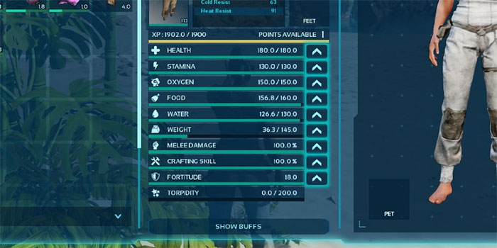 Mỗi khi lên cấp, người chơi có thể tăng chỉ số của mình. Không có quá nhiều, nhưng khi bắt đầu trò chơi, không phải chỉ số nào cũng quan trọng. Khi thức ăn khan hiếm và không có áo giáp tốt, mọi người không thực sự cần phải tập trung vào việc nâng cấp chỉ số oxy của mình. Ở giai đoạn đầu, tân thủ nên tập trung vào các chỉ số sau: Food, Water, Health, Melee Damage và Fortitude.