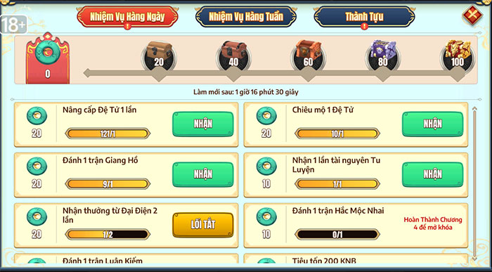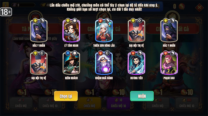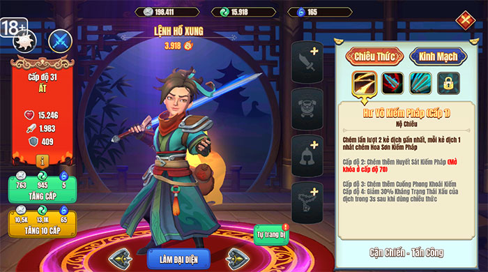 Sau khi thu thập được nhân vật mới, để họ trở nên mạnh hơn thì việc nâng cấp là điều không thể bỏ qua. Để cải thiện sức mạnh cho tướng, hãy tới Đệ tử và tiến hành nâng cấp và mở khóa kỹ năng mới cho các anh hùng đang sở hữu.