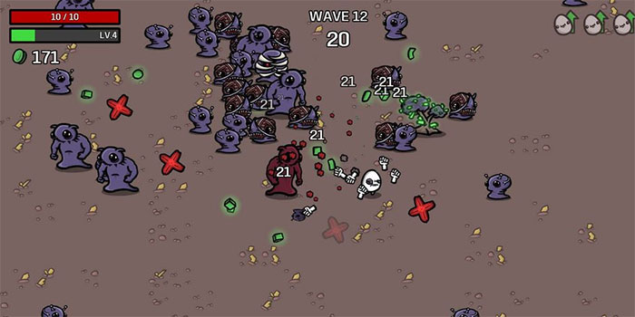 Tất cả các bản đồ của Brotato đều có hình vuông với bốn góc. Khi các đợt sóng tấn công của kẻ thù ngày càng dữ dội, người chơi khó tránh khỏi bị kẻ thù vây xung quanh. Khi đó, bạn nên di chuyển theo vòng tròn để tránh bị chúng tiến quá sát.