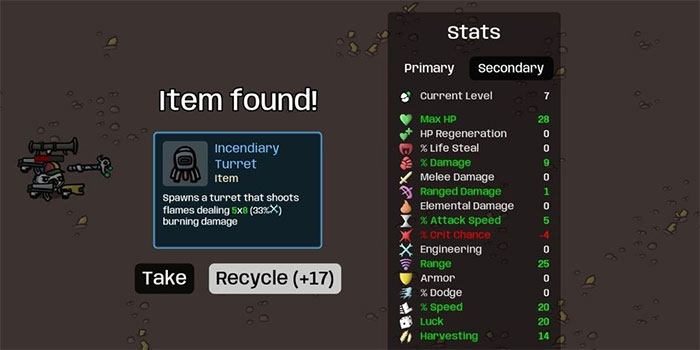 Giống như hầu hết các trò chơi cùng loại, các chỉ số rất quan trọng trong Brotato. Người chơi phải chú ý đến chỉ số của anh hùng và những gì mình đang hướng tới với mỗi lần nâng cấp vật phẩm. Một vài chỉ số dễ hiểu trong khi vài chỗ khó hiểu hơn.