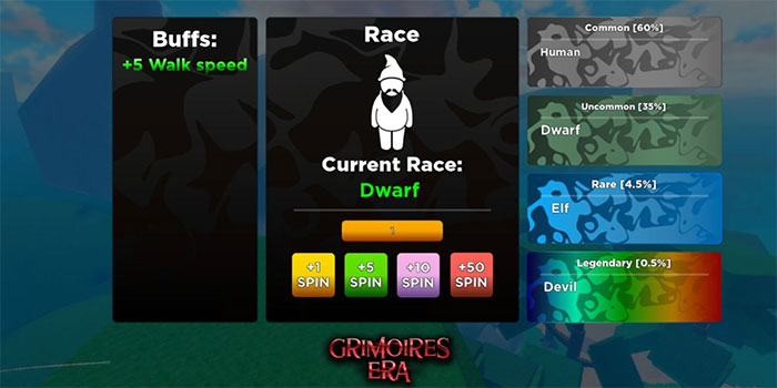 Sau đó, người chơi sẽ được đưa đến một menu mới nơi có thể chọn chủng tộc của mình. Mỗi chủng tộc đều có những ưu điểm riêng nhưng để thay đổi nó, mọi người sẽ cần phải thực hiện một vòng quay.