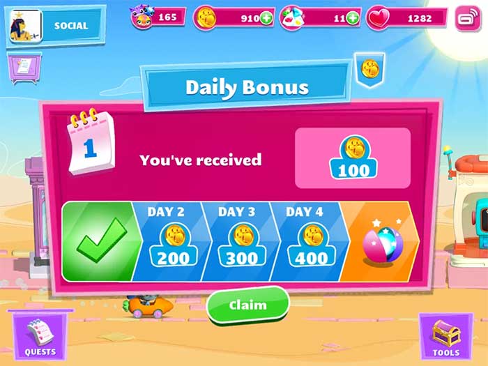 Người chơi cần 100 trái tim cho mỗi lần quay máy đồ chơi. Để nhận thêm, trước tiên hãy đảm bảo thiết bị được kết nối với Internet. Sau đó, chạm vào nút công cụ ở góc dưới bên phải của màn hình. Từ đó, nhấp vào Social, sau đó chọn thị trấn muốn ghé thăm. Khi đến đó, hãy chạm vào những chiếc gương, ấm đun nước và xô sơn đó để kiếm trái tim miễn phí.