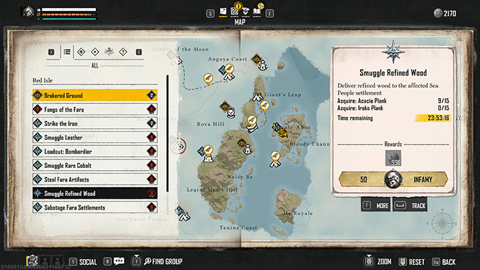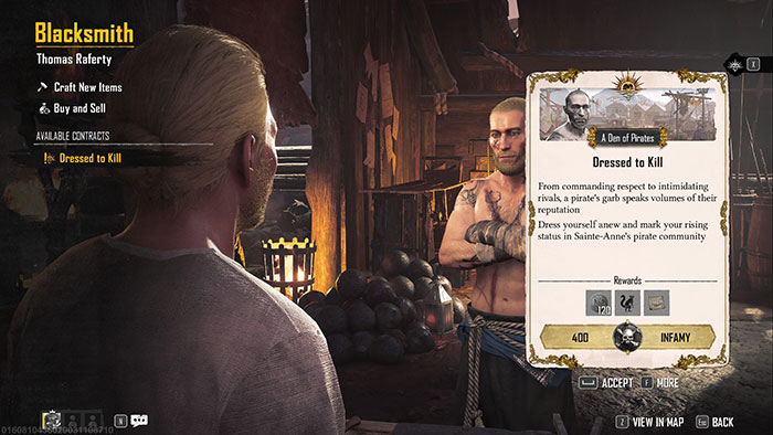 Hệ thống Infamy là chìa khóa của Skull and Bones. Đánh bại tàu địch và hoàn thành nhiệm vụ, người chơi sẽ kiếm được điểm có thể sử dụng để mở khóa các bản thiết kế thiết bị và loại tàu bổ sung. Sau khi rời khỏi khu vực ban đầu và đến Sainte-Anne, trung tâm cướp biển chính, trước tiên hãy hoàn thành chuỗi nhiệm vụ ban đầu để tìm hiểu cách trò chơi hoạt động.