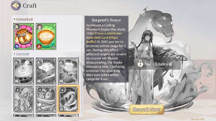 Skill Card là một yếu tố thay đổi cuộc chơi trong hệ thống chiến đấu của Tales of Terrarum. Những thẻ này cung cấp nhiều hiệu ứng, từ gây sát thương lớn đến hồi máu và tăng sức mạnh cho đội. Vì Skill Card được chế tạo từ các tài nguyên thu thập được trong các cuộc phiêu lưu, nên điều quan trọng là phải quản lý vật liệu cẩn thận và chế tạo những thẻ có lợi nhất cho đội của mình.