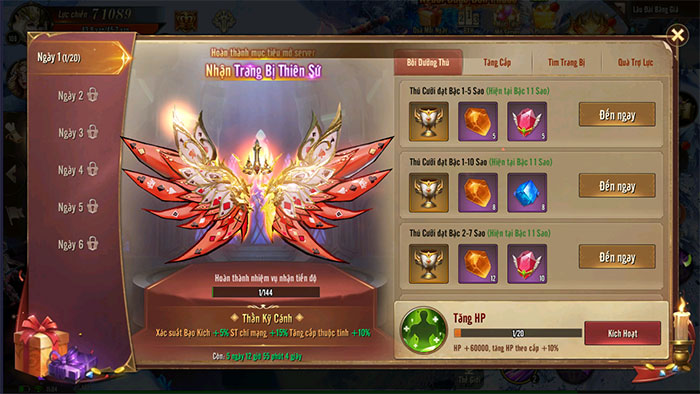 Ngoài ra còn có các mục tiêu mở server, cung cấp một danh sách những mục tiêu cần đạt được trong ngày, do đó hãy kết hợp với việc thực hiện nhiệm vụ chính tuyến để nhận thưởng giá trị vào mỗi ngày.