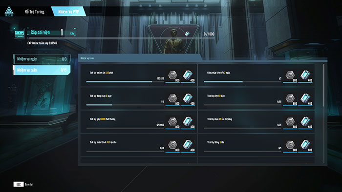 Nhiệm vụ tân thủ - Sổ tay chiến sĩ: Mỗi chương được hoàn thành, xạ thủ sẽ nhận tiền trong game, vật phẩm và mở khóa chương kế tiếp. Mỗi chương thưởng từ 300 đến 500 vàng.