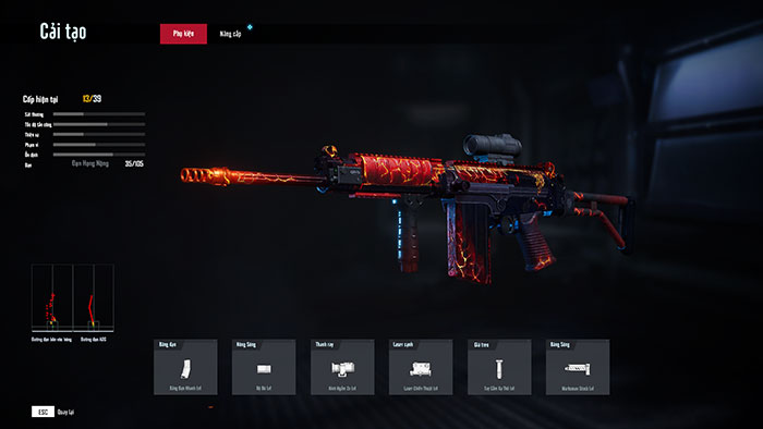 13 level đầu tiên người chơi có thể nâng bằng bạc nhưng từ level 14 sẽ cần vàng để cải tạo. Ngoài ra, các vũ khí cùng loại nhưng khác skin sẽ được giữ nguyên cấp độ mà không cần nâng cấp lại từ đầu. Mỗi level sẽ nhận 1 loại phụ kiện tương ứng.