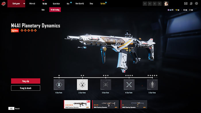 Đối với vũ khí bất hủ (màu đỏ) sẽ có thêm mục nâng cấp Vũ khí trưởng thành, với 5 cấp bậc sao mang hiệu ứng và tính năng riêng.