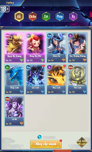 Để chiến thắng mọi đối thủ, người chơi cần có một đội hình toàn diện với những tướng mạnh nhất. Truy cập mục Tướng và tiến hành nâng cấp nhân vật bất cứ khi nào có thể để cường hóa sức mạnh cho họ.