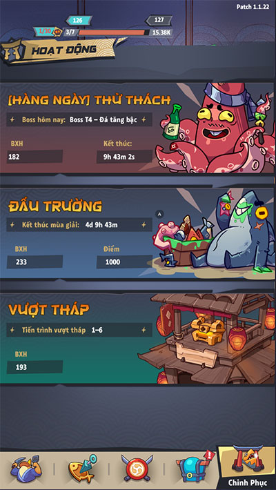 X-Fish: Làng Cá Đại Chiến cung cấp nhiều sự kiện và hoạt động in-game thú vị để người chơi tham gia để cạnh tranh với các game thủ khác. Ví dụ, truy cập menu Chinh phục, người chơi sẽ thấy nhiều gameplay khác nhau, nơi người có lực chiến cao chiếm ưu thế, farm tài nguyên để phát triển. Game thủ X-Fish có thể tăng cấp bằng cách treo máy vượt ải và build đội hình mạnh.