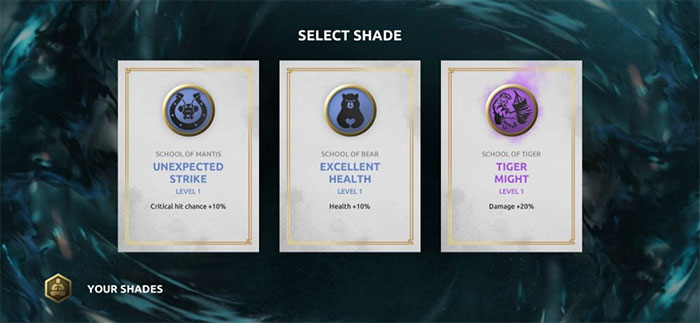 Khi hoàn thành từng giai đoạn của một chương của cuộc chiến, game thủ cần chọn 1 trong 3 Shades. Sau khi chọn xong, giai đoạn tiếp theo sẽ bắt đầu và sức mạnh của Shade đã chọn. Mỗi Shade nắm giữ sức mạnh khác nhau trong các lĩnh vực tấn công, gây sát thương, phòng thủ hoặc chữa lành. Tùy thuộc vào lối chơi của mình để chọn Shade thích hợp nhất có lợi trong các trận chiến.