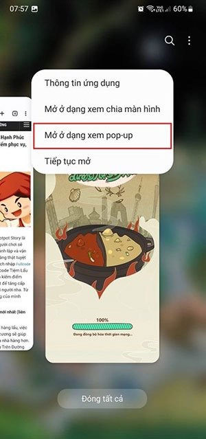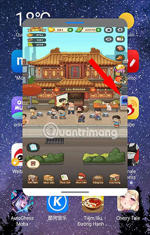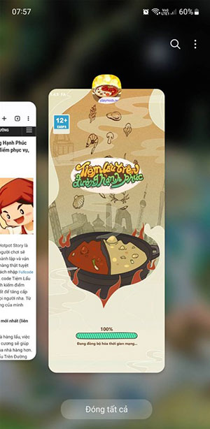 Bước 1: Mở Tiệm Lẩu Đường Hạnh Phúc trên thiết bị và tiếp tục bật đa nhiệm (giao diện các ứng dụng đang chạy trên điện thoại).