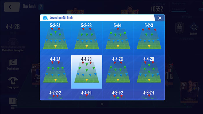 Tại phần Đội hình trong giao diện chính của trò chơi, game thủ có thể cài đặt chiến thuật đội hình, đưa các cầu thủ vào đúng vị trí phù hợp với họ. Football Pro VTC có nhiều sơ đồ chiến thuật để game thủ lựa chọn, bên cạnh đội hình mặc định 4-4-2 và 4-1-2-1-2, để tự do thiết lập và tùy chỉnh sao cho phù hợp với lối chơi của mình.