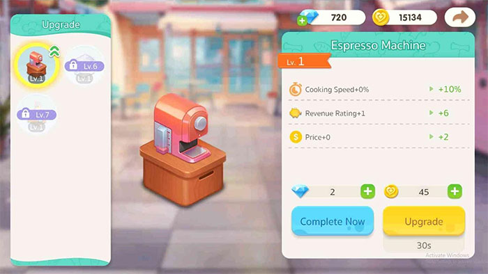 Khi bắt đầu mở quán cà phê của mình, người chơi phải làm mọi thứ từ đầu và chỉ có cơ sở vật chất cho việc phục vụ một khách hàng tại một thời điểm. Thật đáng tiếc khi dù có làm tốt hơn ở quán cà phê của mình thì cũng không thể phục vụ nhiều khách hàng hơn cùng một lúc do nội thất và cơ sở vật chất trong quán cà phê còn hạn chế. Đó là lý do chính cho việc game thủ nên nâng cấp quán cà phê của mình bằng nội thất và cơ sở vật chất càng sớm càng tốt.