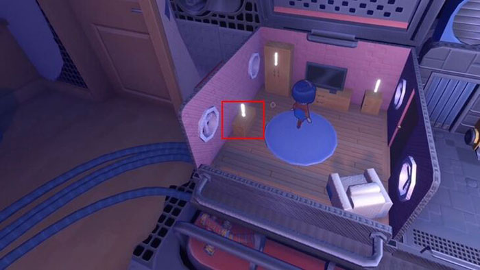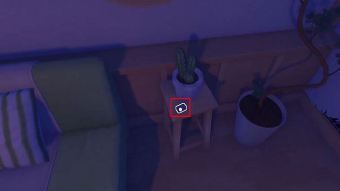 Người chơi sẽ vào nhà của một phiên bản khác. Trong phòng khách, đi đến tủ sách ở góc bên trái và lấy hộp băng của người chơi.