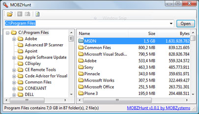 Nó rất dễ sử dụng: chọn một thư mục ở trên cùng, nhấn nút Open nhiệm vụ còn lại là của MOBZHunt. Bạn cũng có thể nhanh chóng sắp xếp các tập tin khi cần thiết để tìm và xóa theo đĩa.