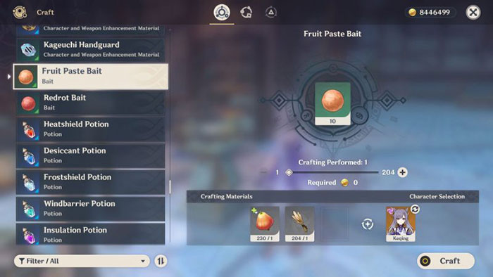 Người chơi có thể bắt đầu chế tạo mồi câu trong Crafting ngay sau khi mở khóa chúng. Bên cạnh đó, gặp NPC Nantuck - một người câu cá ở Monstadt, để mua bản vẽ hướng dẫn chi tiết cách chế tạo các loại mồi câu.