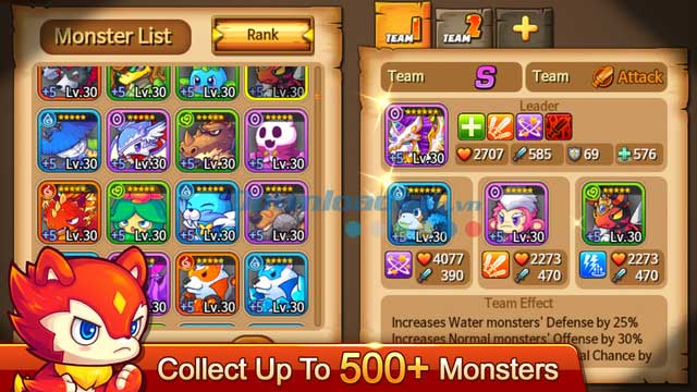 - Ghép các loại quái khác nhau để tạo thành đội quái mạnh nhất.