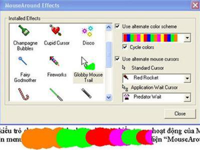 - Globby Mouse Trail: mỗi khi trỏ chuột di chuyển sẽ kéo theo một dòng vòng tròn đủ màu sắc.