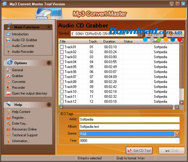 Ba chức năng chính của MP3 Convert Master gồm: sao chép Audio-CD, chuyển đổi định dạng file âm thanh và ghi lại âm thanh được phát trên hệ thống.