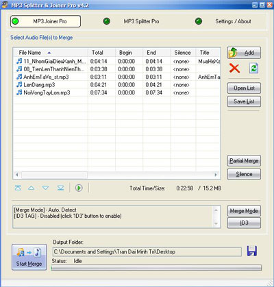 1. MP3 Joiner Pro (nhập các tập tin mp3):