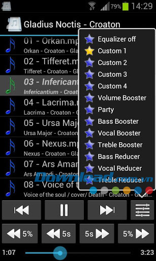 Lưu ý: việc thực hiện bộ cân bằng và hiệu ứng trên các phiên bản Android cũ hơn khá phức tạp và yêu cầu bản quyền.