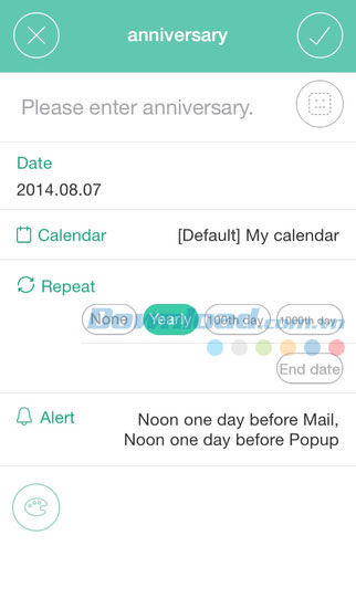 Người dùng có thể phân loại từng loại thời gian biểu hay ngày kỷ niệm bằng nhiều màu sắc khác nhau để dễ dàng tham khảo, hoặc trang trí bằng sticker để lịch điện tử trở nên thân thiện, ấn tượng hơn, tránh cảm giác nhàm chán và đơn điệu như các ứng dụng lịch khác.