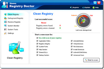 Nemo Registry Doctor là một tiện ích mạnh mẽ được thiết kế để dọn dẹp và sửa chữa các mục vô ích và không hợp lệ trong Windows registry. Nó cung cấp hiệu suất cao để quét registry và làm sạch các mục thừa không còn sử dụng bao gồm thông tin để lại từ việc thêm và loại bỏ các chương trình, System Fonts, Startup Programs...