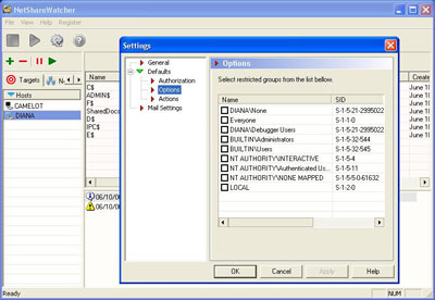 NetShareWatcher cho phép dễ dàng kiểm soát tình trạng chia sẻ tài nguyên & quyền hạn trong mạng. NetShareWatcher sẽ cảnh báo mỗi khi có một user tiến hành thiết lập ACL (Access Control List) cho phép tất cả mọi người hoặc nhóm rất nhiều người có thể gây ảnh hưởng đến việc phân quyền truy nhập dữ liệu cũng như cấm việc chia sẻ folder nếu bạn chọn tính năng tương ứng trong phần thiết lập.