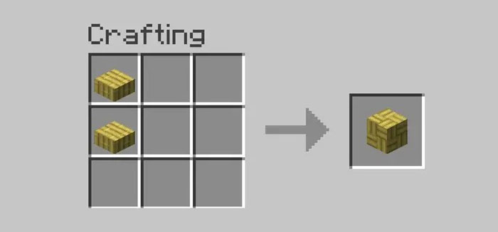 Khối này chỉ có thể tạo ra bằng tre, không thể thay thế bằng các loại gỗ khác trong Minecraft. May mắn là công thức này chỉ cần 2 tấm ván tre để chế tác.