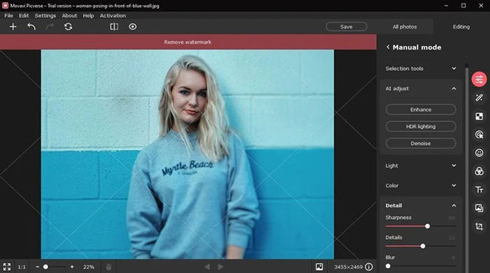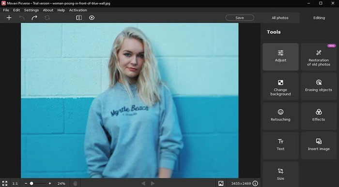 Movavi Picverse, khả dụng cho cả Mac và Windows, là một phần mềm chỉnh sửa ảnh toàn diện sử dụng AI để chỉnh sửa ảnh, mang đến quy trình làm việc nhanh chóng. Để sửa ảnh bị mờ bằng Picverse, hãy làm theo các bước sau:
