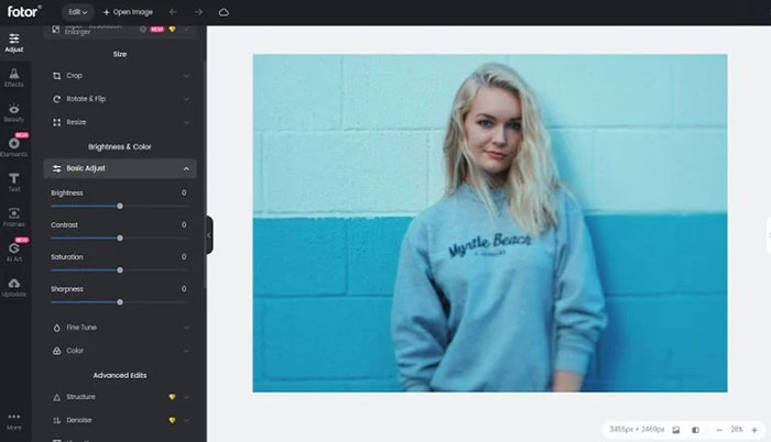 Bước 4: Kéo xuống và chọn Basic Adjust để điều chỉnh Sharpness của bức ảnh ở mức hợp lý. Mọi người cũng có thể tăng Contrast trong mục Basic Adjust.